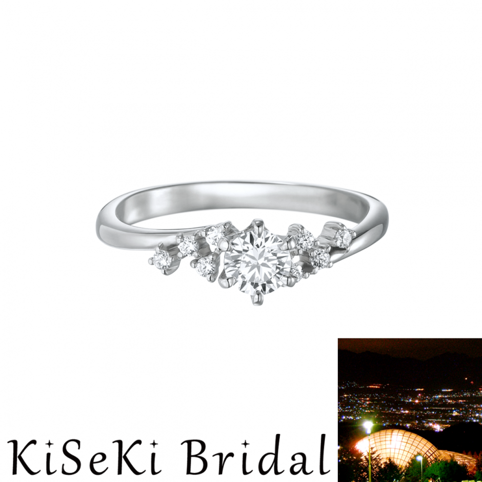 デートコース、思い出の場所、お二人の軌跡(KiSeKi)がコンセプト。場所の名前が リング名。地元の方だからこそ共感できるローカルなキャプション付で特徴がデザインの 中に表現されてます。ノスタルジックな原風景はお二人それぞれの思い出も呼び起こ すものになるかもしれません。お二人の奇跡(KiSeKi)の出会いと貴石(KiSeKi)= ダイヤモンド(その硬さから「固い絆を結ぶ」という意味)とを繋ぐコレクションです。