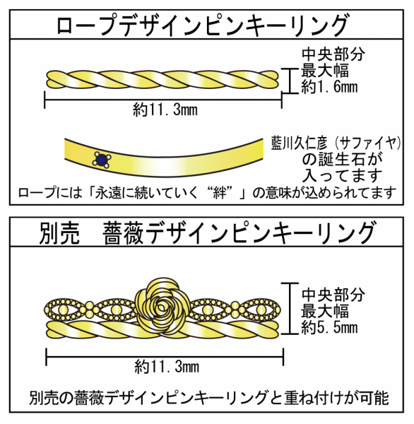 2本線が巻きついたようなロープデザインのメンズピンキーリング。レディースリングと重ね付けもできます。内側に「藍川久仁彦」の誕生石が入っています。オプションであなたの誕生石を並べて入れることも可能です。